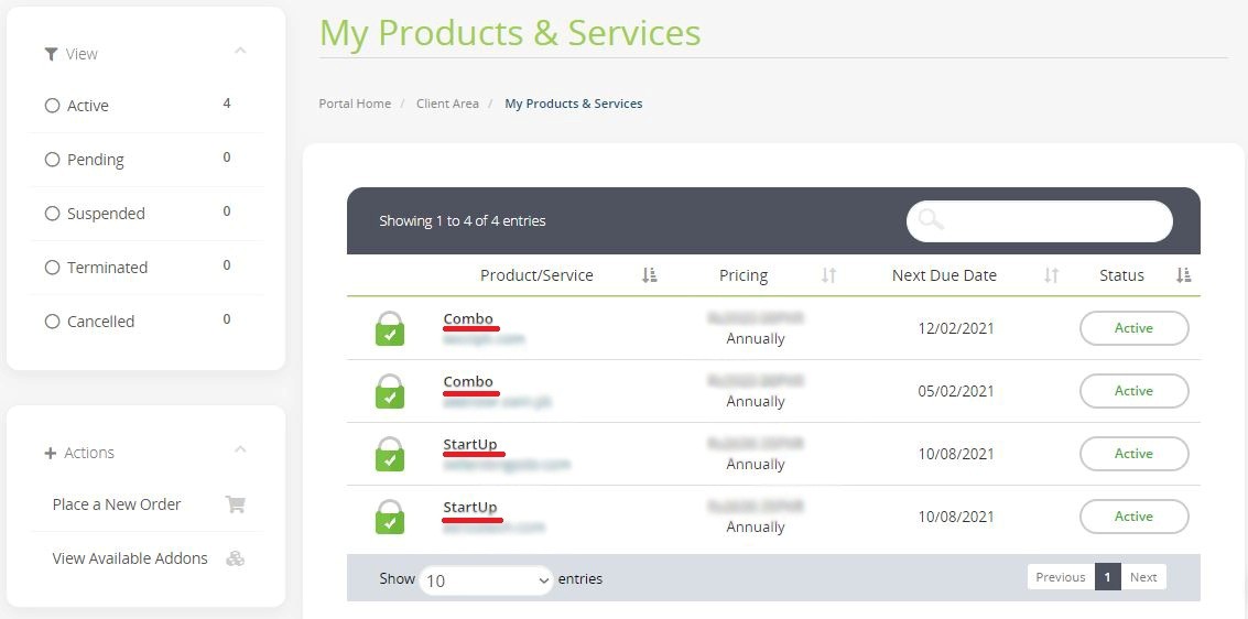 You can observe the status of your currently active services purchased from OBHost through your client portal.