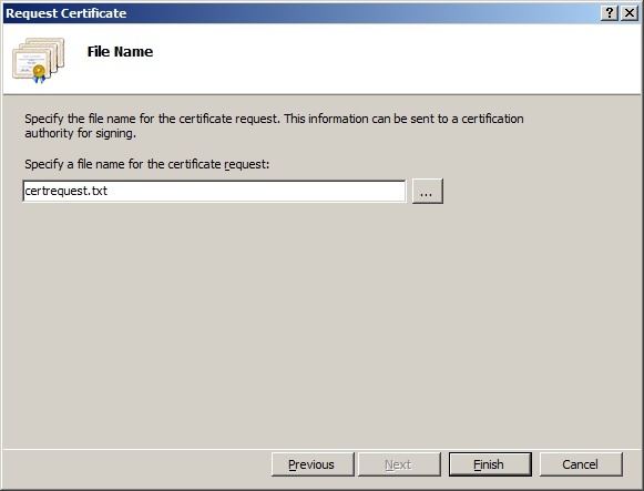 9. Provide a filename for the certificate request. The contents of this file will be required in order to complete the enrollment.